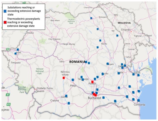 - As a general observation, it appears that the level of seismic risk is larger for electric substations than for powerplants, due to the parameters of seismic fragility. More analyses and a validation of HAZUS [44] seismic fragility using data from the Romanian electricity network should be performed in the future. In addition, more data about seismic exposure (considering other energy production facilities, transformers, etc.) are needed in order to improve the quality of the seismic risk model. The impact of the spatial correlation of ground motion amplitudes on the seismic risk metrics should also be assessed.