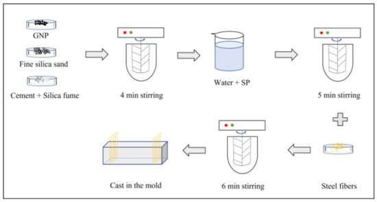 2.2. Preparation of GNP-Modified Steel-Fiber-Reinforced High-Strength Concrete (GNP-HSC)