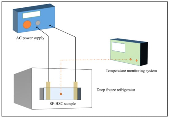 - Liu, Y.; Wang, M.; Wang, W. Ohmic heating curing of electrically conductive carbon nanofiber/cement-based composites to avoid frost damage under severely low temperature. Compos. Part A Appl. Sci. Manuf. 2018, 115, 236–246. [Google Scholar] [CrossRef]
