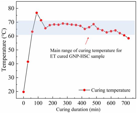 3.2. Temperature Evolution of GNP-HSC Cured by ET Curing