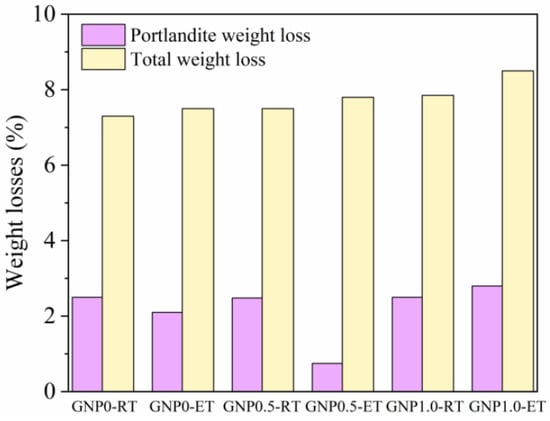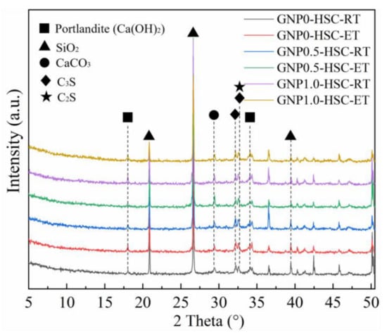 - The results of the XRD, TG and SEM analyses suggest that the incorporation of GNP can stimulate the hydration reaction in ET-cured GNP-HSC samples with a higher hydration degree and denser microstructure, emphasizing the superiority of GNP incorporation for the performance of ET-cured samples for winter concrete construction in cold regions.