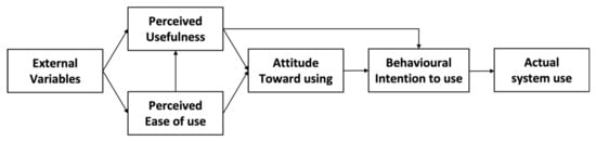 - Davis, F.D. Perceived usefulness, perceived ease of use, and user acceptance of information technology. MIS Q. 1989, 13, 319–340. [Google Scholar] [CrossRef] [Green Version]