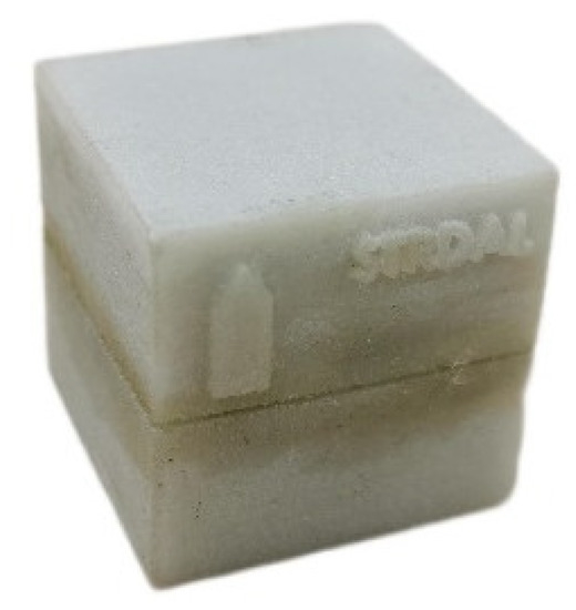 SmartRock, with a similar density to aggregates, as shown in Figure 2, is an ultra-small (23 × 23 × 23 mm) and high temperature-resistant sensor developed for monitoring and predicting the force, deformation, stability, etc., in railway subgrades and highway pavements. SmartRock can collect and monitor original data in real time, including standard time, temperature, internal normal stress, 3D Euler angle in a geodetic coordinate system, shear strain, and high-precision three-axis acceleration. Utilizing Bluetooth Low Energy to transmit data to a portable receiver or a roadside signal collector (STRDAL GLOBAL) and uploading it to the cloud storage in real time, users can check and download measurement data at any time.