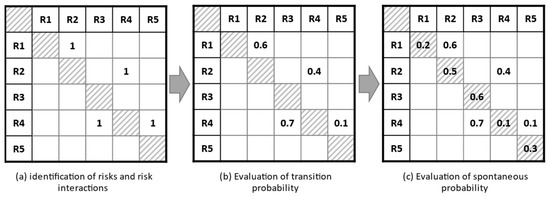 For calculating the strength of the interaction of risks, some expressions which refer to the numerical linguistic criteria are used to calculate the interaction of risks, including S0 is 0, S1 is 0.25, S2 is 0.5, S3 is 0.75, and S4 is 1. Therefore, the risk interaction is expressed in Table 7.