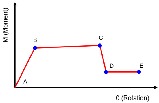Figure 4. Typical moment–rotation curve for reinforced concrete according to ASCE 41 [23].