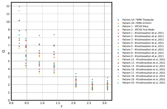 • The FEMA and ATC-40 patterns allowed to obtain RΩ values closer to the median of distribution from the analyzed patterns, demonstrating that not all patterns studied were representative for concrete moment frames with different stories;