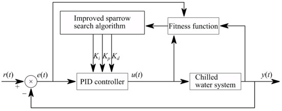 A block diagram of the optimized chilled water system based on the improved sparrow search algorithm is shown in Figure 1.