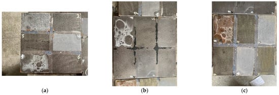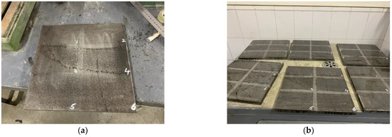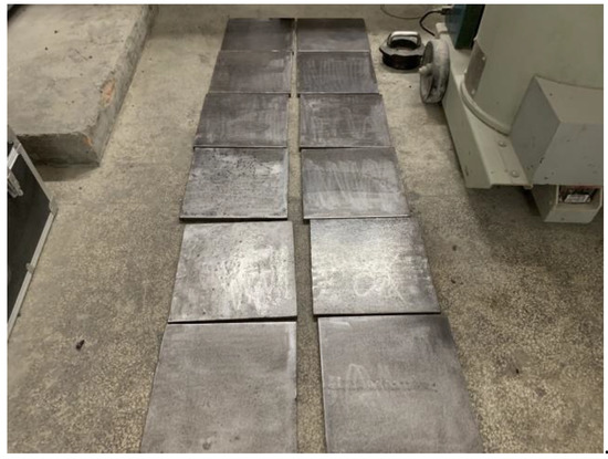 - In this experiment, 30 × 30 cm2 steel plates were used and polished using a grinding machine with a roughness control of 100~120 μm and cleanliness greater than Sa3.0 grade, for a total of 12 pieces, as shown in Figure 2.