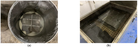 Figure 4. Epoxy maintenance: (a) Room temperature saturated salt solution water bath; (b) 60 °C water bath. - (5)