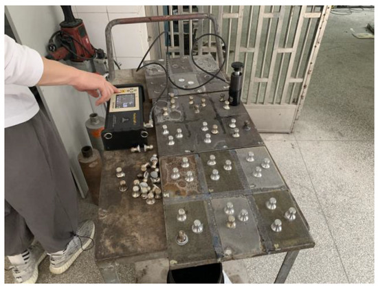 - The pull-out test was carried out after maintenance, using high-strength epoxy AB adhesive as the binder for the pull-out head, see Figure 5 for the pull-out test.