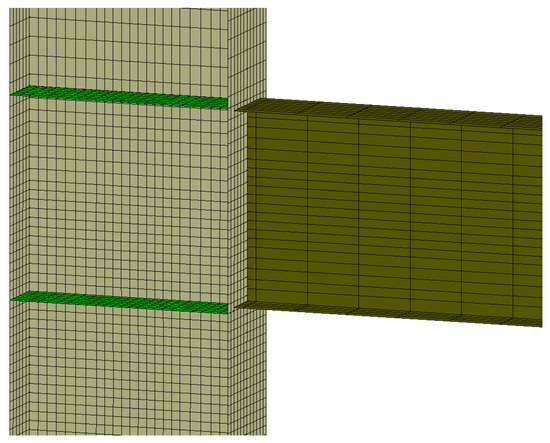 The main objective of this section is to study the behaviour of columns under cyclic loading that has been damaged by fire, using realistic boundary conditions. For this purpose, the frame of Figure 18, which has been designed against earthquakes (details are included in [49]), is used. To reduce the computational cost, the details of the connections were not included in the numerical model and the beams were considered welded to the columns. A primary analysis highlighted the importance of column web stiffeners, which are usually used in the beam-to-column connections of seismic resisting frames; for this reason, they were included in the model (Figure 19).