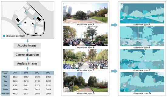 Subway station entrances emphasize pedestrian functions and take traffic efficiency as the primary principle in path organization. The facilities need to meet safety and humanization demands while harmonizing with the dynamic traffic conditions [37]. It is appropriate to build a green space with rich landscape layers and high visibility around subway station entrances. In order to measure the landscape efficiency of subway station entrances, the observable elements with direct influence are preliminarily analysed and classified.