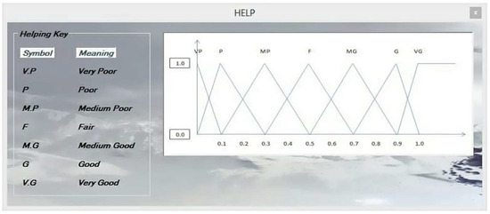 At the third stage, DESSs ranks are determined by using the fuzzy TOPSIS technique. Linguistic variables are used for evaluation of alternatives. The membership functions of these linguistic values and the TFNs related with these variables are shown in Figure 4. The support system that has the maximum closeness coefficient () value is determined as the optimal alternative, according to the calculations by fuzzy TOPSIS. The ranking of other systems is determined according to values in descending order. The following are the steps used to calculate the value for prioritizing the alternatives [23]:
