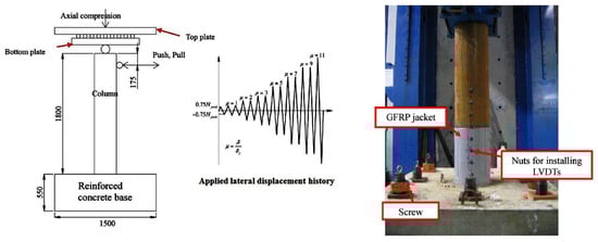 Outward local buckling has always been a big problem when dealing with concrete-filled tubular (CFT) steel columns, as the inward portion is stopped by the concrete poured inside. Whether in sway or moment resisting frames, the CFT columns are exposed not only to axial loads but also to lateral winds/seismic loadings, which generate moments in columns, particularly at the ends. Thus, practitioners consider the ends of columns critical when the columns are subjected to a combination of axial and lateral loadings. When performing a seismic design, the moment resisting frame’s column must be capable of undergoing a plastic lateral deformation and adequate ductility. Several credible studies were performed aiming at assessing the CFT columns’ performance [,,]. For example, Xiao [] suggested a method to confine the ends of CFT columns with wraps of FRP to avoid the occurrence of outward local buckling, enhance the columns’ ductility and strength, and improve the effectiveness of the inner concrete, particularly at the columns’ ends with high stresses [,,]. Confining CFT steel columns with wraps of FRP was investigated for effectiveness by a number of studies [,,,,,,,,,]. The wrapped-with-FRP CFT circular glass columns were experimented upon when they were exposed to monotonic [] and cyclic [,] axial compressions. However, only a limited amount of research focused on the seismic performance of confined-with-FRP CFT columns of steel [,,,]. These studies assured that there was a significant improvement in the seismic resistance of squared and circular confined-with-FRP CFT steel columns. From another perspective, concrete structures are often endangered with collapse due to exposure to harsh environmental conditions, such as corroding of reinforcing steel, freeze–thaw cycles, and (mainly) sulfate attacks, which negatively affect the durability of foundations, structures in marine environments, and surrounding retaining walls [,,,,]. In addition, sulfate attacks consume hydrated cement paste, scale and shell the surface of concrete, and disintegrate and crack concrete, in addition to exposing the aggregates; this due to the formation of ettringite, creating concrete compressive stresses, generating steel tensile stresses, weakening the concrete–steel bond, and degrading the structural durability and load-carrying capacity [,]. In order to protect the to-be-built structures against the bad influence of sulfate attacks, it is mostly advised to insulate the concrete and utilize concrete mixes that have plenty of pozzolanic additives and sulfate-resistant cementitious materials [].