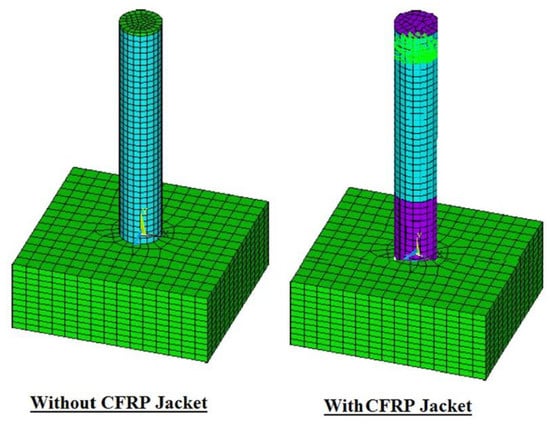 Meshing of the CFT specimens with and without CFRP wrapping.