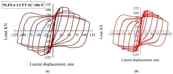 Deformed shapes: (a) NLFEA and (b) result LCFT-0-106-F. Reprinted from Yu et al. [].
