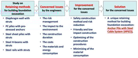 The authors were aware that each type of retaining method usually required a large amount of money and would take a long time to construct. A couple of major concerns, such as risk management, impact to the environment, construction duration, construction costs, use of materials, and energy consumption, always influence the selection of the construction method. Thus, approaches to improve safety concerns and risk reduction, environmental impact, optimization of construction procedures, and minimization of material consumption, are seriously discussed among engineers.