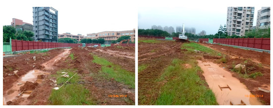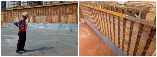Furthermore, when compared to Case 1, the APSCS method reduced the construction costs by up to NT $350 million and shortened the construction duration by at least 90 days. The APSCS also successfully achieved the principle of the circular economy. Most importantly, without any horizontal struts in the basement construction zone, the APSCS method provided a safer site environment for the installer/worker to perform construction work. Compared to Case 2, the A7 public housing building project, Part D (A7PHB-D), mentioned in Section 2.2, the proposed APSCS method successfully prevented the occurrence of any accidents or disasters during the excavation of the basement. Figure 16 shows the construction site after excavation work (under the corresponding author’s supervision) and the layout of the APSCS members with the wire-meshed concrete protection layer at the ground level, respectively.