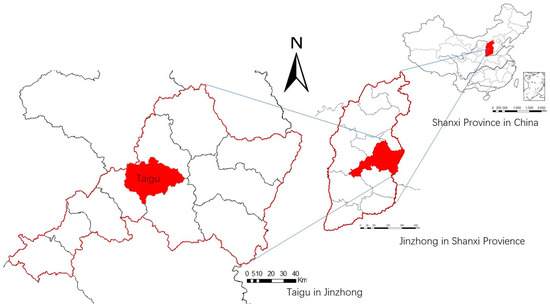 This study selected gated communities in the built-up urban area of the Taigu District within the Shanxi Province as the study area. The location of Taigu is shown in Figure 3. This built-up urban area is about 10.86 square kilometers, and according to the statistics of China’s seventh census, the urban population of Taigu was 162,425. The gated communities in the district reflect the fundamental characteristics of Chinese gated communities similarly to other areas in China, which carried out the housing reform in China as well. According to the data from the “Taigu Housing and Urban Rural Development Bureau”, at the end of 2019, there were 300 gated communities in the urban area of Taigu, which included 138 “post-workplace communities” and 162 “new communities”.