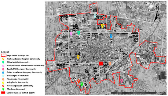 Locations of the ten gated communities in the Taigu urban built-up area.