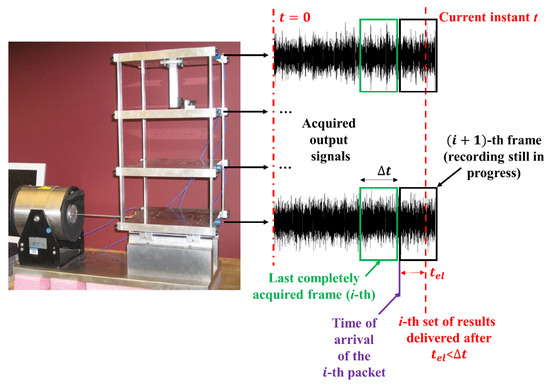 For instance, in civil engineering, even the so-called ‘continuous’ monitoring is actually performed at discrete times, e.g., at daily (see e.g., [18]) or hourly (e.g., [19]) intervals. The rationale is that many sorts of damage, such as fatigue cracks, corrosion, or other kinds of material deterioration, are generally very slow-growing. The exact instant of occurrence is difficult to detect but also not truly relevant for the integrity assessment of the structure. On the other hand, sudden collapses, e.g., due to an impact, blast, or seismic event, are rarer events. Nevertheless, these occurrences are particularly relevant for precarious and/or strategic structures and infrastructures, such as earthquake-damaged buildings, ageing viaducts and bridges, etc. Thus, real-time SHM should be applied wherever instantaneous structural failure might be reasonably expected.