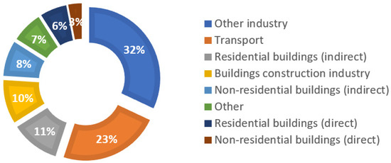 Global share of buildings and construction final CO2 emissions 2019. Adapted from [10].