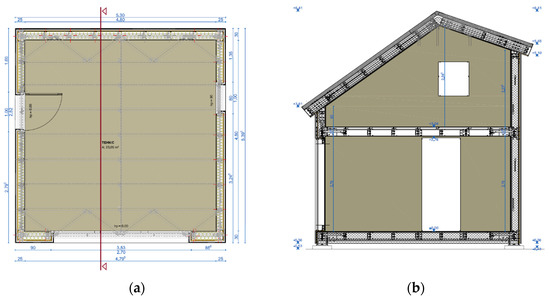The experimental module, presented in Figure 4 and Figure 5, was designed following sustainability design criteria: material and resources procurement and efficiency, health and well-being, energy and cost-efficiency. Some of the sustainability aspects of LSF constructions include the speed of construction, possibility of prefabrication, architectural flexibility in building retrofit, small weight with increased mechanical strength, significant potential for recycling and reuse, transportation and handling cost savings, and others [13,22,23,24].