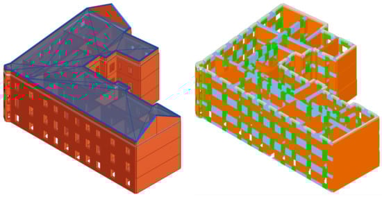 The case study building described in this paper is a corner building of a city block. Behavior of such buildings is quite complex because of the affect that the adjacent buildings have on the building observed. The role of interaction between adjacent buildings during seismic events has been investigated by many authors [3,4,5,6,7], however, due to the complexity of the problem, its solution is not always straightforward. Therefore, the crucial part of strategies for seismic risk mitigation and for improving the resiliency of cities should be the continuous vulnerability assessment [8]. Although, seismic vulnerability assessment of historical masonry buildings in Croatia was conducted for the Adriatic coast [9], that is not the case for the city of Zagreb which is located in the continental part of the country. However, with the lessons learned from the Zagreb earthquakes, it is obvious that the assessment and rehabilitation of existing masonry structures must be performed at the highest level using a variety of state-of-the-art techniques. When talking about the assessment of existing masonry buildings per se, the variety of techniques enables the civil engineering community to have a very good insight into the building’s characteristics and behavior. From laser scanning, use of unmanned aerial vehicles (UAVs) and LiDAR (Light Detection and Ranging) to numerous NDT (nondestructive testing) methods [10,11,12,13] and the use of machine-learning based vulnerability analysis [14] or automated mechanical models for masonry aggregates [15], all may be used to get a better understanding of the buildings’ most important characteristics.