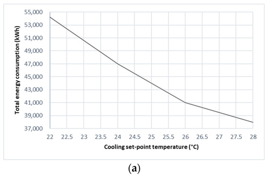![]() | Cooling set-point temperature (°C) | 0.5705 | 0.0000 * | Cooling set-point temperature (°C) | −0.6926 | 0.0000 * |