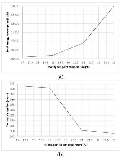 3.3.1. Effect of Cooling and Heating Set-Point Temperatures