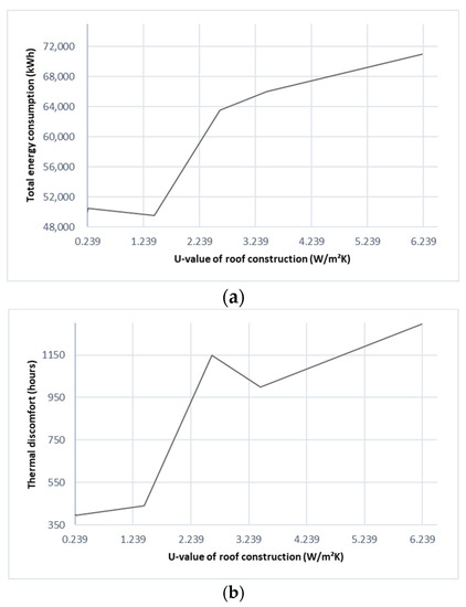 - Based on the parametric and sensitivity analyses, there is a very weak relationship between the students’ thermal discomfort hours and the building cooling/heating load. However, the cooling and heating set-point temperatures, as well as roof construction, had a significant impact on the sensitivity of the ABDPs for both building energy consumption and student thermal comfort (p = 0.0000).