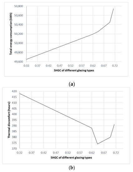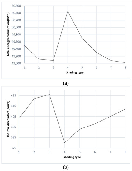 3.3.3. Effect of Glazing, Window to Wall Ratio and Shading Devices
