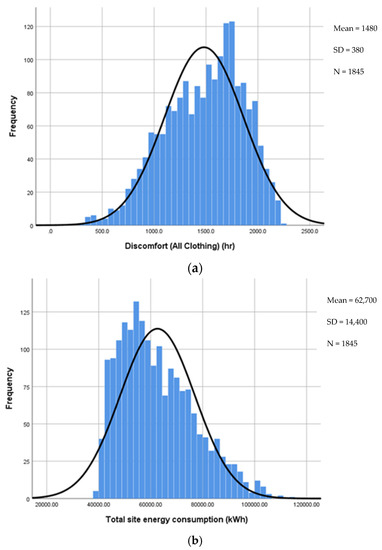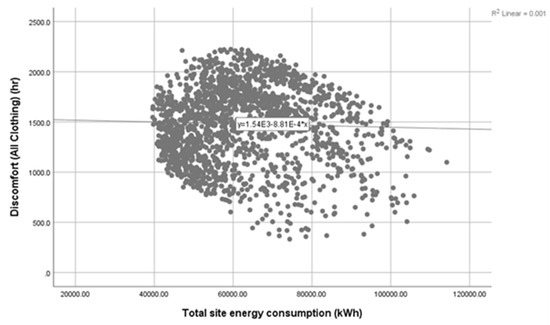 | Discomfort (All Clothing) (h) | Total Site Energy Consumption (kWh) | ||