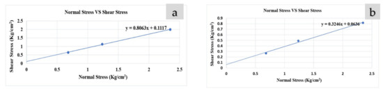 The results of geotechnical testing are given in Table 1 and Figure 4, with Atterberg’s limits, AASHTO, and USCS classifications for different depths. The cohesion 7 kPa to 25 kPa and angle of internal friction from 13° to 27°, as observed in Figure 5, depicts the changes of normal stress to shear stress. The modulus of the elasticity of the soil changed from 6000 to 9000 kN/m2, as mentioned in Table 2. The odometer tests performed and the stress and voids ratio variations are shown in Figure 5 and Figure 6, with the value of Cc as 0.0122, 0.0106, and 0.0197, respectively, at different depths also mentioned in Table 2.