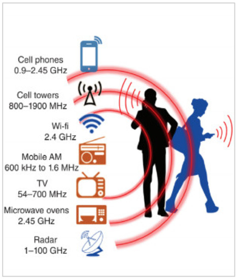 - Xing, J.Y. Electromagnetic Radiation on Human Health Hazards and Protective Measures in Modern Society. Adv. Mater. Res. 2012, 518–523, 1022–1026. [Google Scholar] [CrossRef]