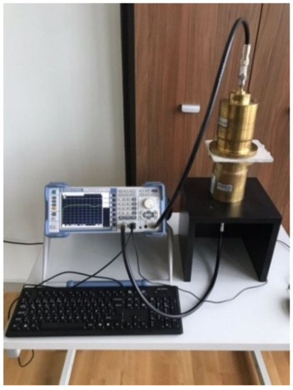 EM was measured according to ASTM 4935 using a ROHDE&SCHWARZ network analyzer. The experiment is shown in Figure 5, containing two antennas.