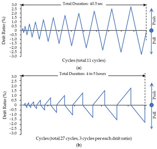 Drift ratios and corresponding displacements applied to the tested specimens.