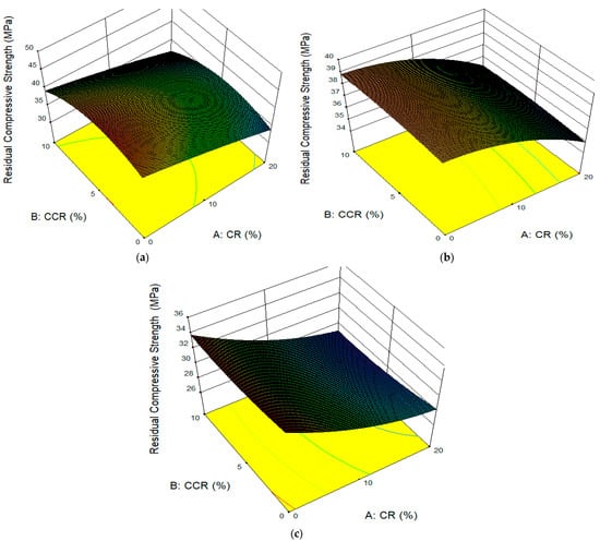 - The multi-objective optimization results showed that the best optimum or best mix combination based on minimum weight loss in terms of H2SO4 and MgSO4 attacks minimum water absorption. After being subjected to elevated temperature, the maximum residual compressive strengths and minimum weight reductions were achieved by replacing 2.9% fine aggregate with CR and 5.5% cement with CCR.