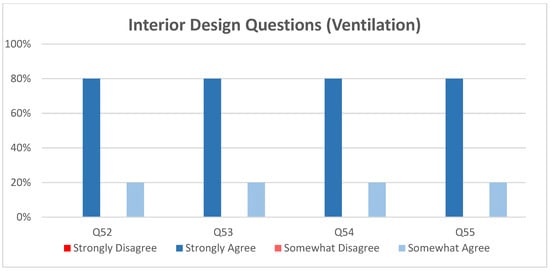 The majority agreed with all ventilation-related questions, with 80% strongly agreeing and 20% somewhat agreeing. Arbitrator A3 somewhat agreed, suggesting that a detail box be added to each question.