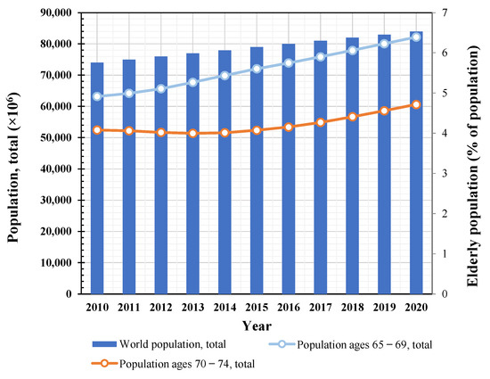 The elderly population worldwide is increasing rapidly [1] (Figure 1). Every country provides specialized medical services to the elderly and patients suffering from age-related diseases to protect the right of older people to health. The most common example of such services is the care and treatments provided by nursing hospitals. Generally, because it takes a long time for patients with impaired mobility to egress during a fire disaster in a nursing hospital, a relatively high number of casualties may occur compared to those in other facilities [2].