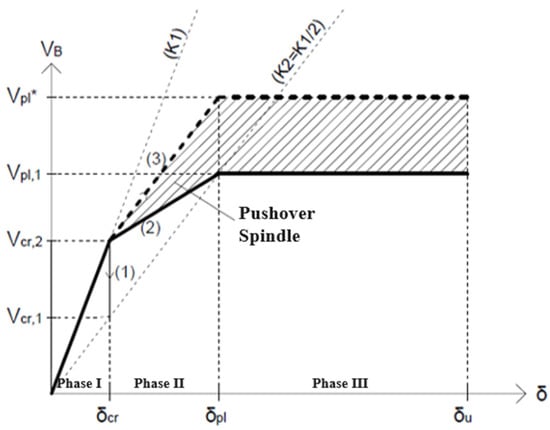 - If the compressed diagonal has medium slenderness (), it is possible to reach the third phase with curve (2) characterized by a plastic shear lower than .