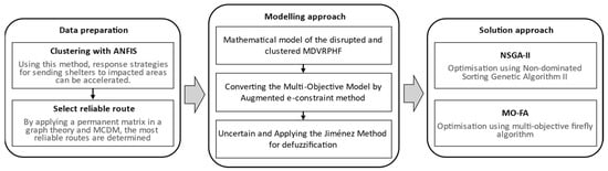 47]. Clusters obtained by the ANFIS method are prioritised by affecting factors on route reliability to find the most reliable route for distributing temporary shelters to these points using this theory. Road type (e.g., autobahn and highway), mountainous rate, and geographical characteristics all have an impact on the reliability of cluster 1 (i.e., ground and air relief). The severity of the crisis, the regional context (rural or urban), the conditional weather, the population of the region, and the distance of the air vehicle depot and damaged points all have an impact on the reliability of cluster 2 (i.e., air relief).