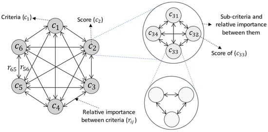 Step 2 (definition of the relative importance of criteria and alternatives score): In this step, if the criterion is qualitative, the values of the alternatives score can be calculated by rating a scale from zero to one [