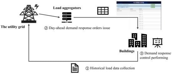 10]. Motor devices and plug-in appliances are not suitable for demand response control because they are uninterruptible and difficult to be predicted in the application. Lighting equipment has the ability of rapid regulation, but it only provides limited demand response service due to its low power ratio. Due to the high flexibility and potential of regulation, the air conditioning system has become the most suitable element to implement building demand response. In cooling/heating seasons, a building air conditioning system consumes 50%–90% of electricity, typically lasting 10 h. Extensive indoor comfort requirements imply that the cooling/heating load of the air conditioning system is able to fluctuate while thermal comfort is guaranteed.