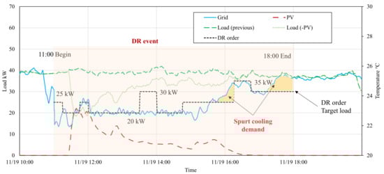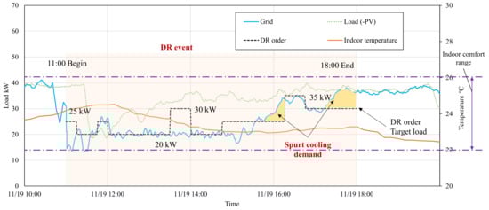 With the implementation of the control strategy, load curves of the building during the DR event are shown in