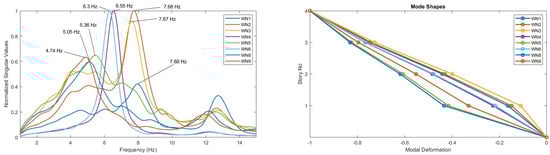 - Brincker, R.; Ventura, C.E.; Andersen, P. Damping estimation by frequency domain decomposition. In Proceedings of the 19th Int’l Modal Analysis Conference (IMAC), Kissimmee, FL, USA, 5–8 February 2001; pp. 698–703. [Google Scholar]