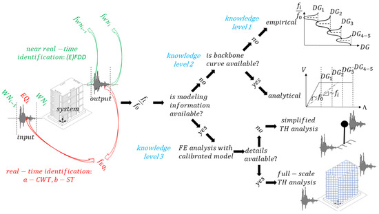 Vibration-Based and Near Real-Time Seismic Damage Assessment Adaptive to Building Knowledge Level
