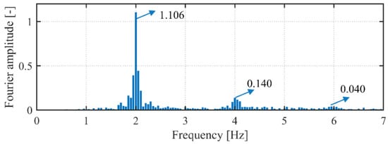 The values of rj for jumping loads are commonly determined by two methods. In the first method, hereafter termed as the peak method, the maximum value of the jth harmonic region in the Fourier amplitude spectrum is adopted as rj, as depicted in Figure 1, and the values are listed in Table 1 for further comparison. In the above, the jth harmonic region is ((j − 0.5)fgu, (j + 0.5)fgu). As for the second method, hereafter termed as the energy method, the total energy of the jth harmonic region in the Fourier amplitude spectrum is adopted as rj, as calculated by: