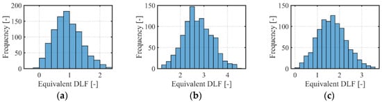 Equivalent DLF histogram of the first harmonic. (a) 1.5 Hz guidance frequency, (b) 2.5 Hz guidance frequency, (c) 3.5 Hz guidance frequency.