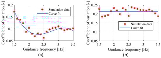 Modeling of the coefficient of variation of different guidance frequencies. (a) Modeling for the first harmonic, (b) Modeling for the second harmonic.